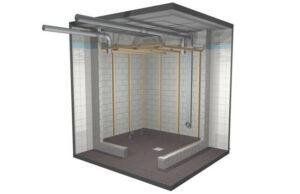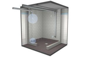 w domu blisko prysznica, lub wanny. Podłoga może być wykończona płytkami