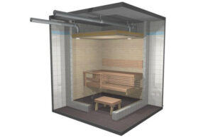 Naszą saunę zbudujemy z kantówki świerkowej o przekroju 75x45mm budując z niej konstrukcję ścian w których wykonamy otwory okienne i drzwiowe, jak również konstrukcję stropu nad naszą sauną. Zbudujemy ją zapewniając odpowiednią odległość do ściany pomieszczenia aby przestrzeń między nimi mogła się wentylować.